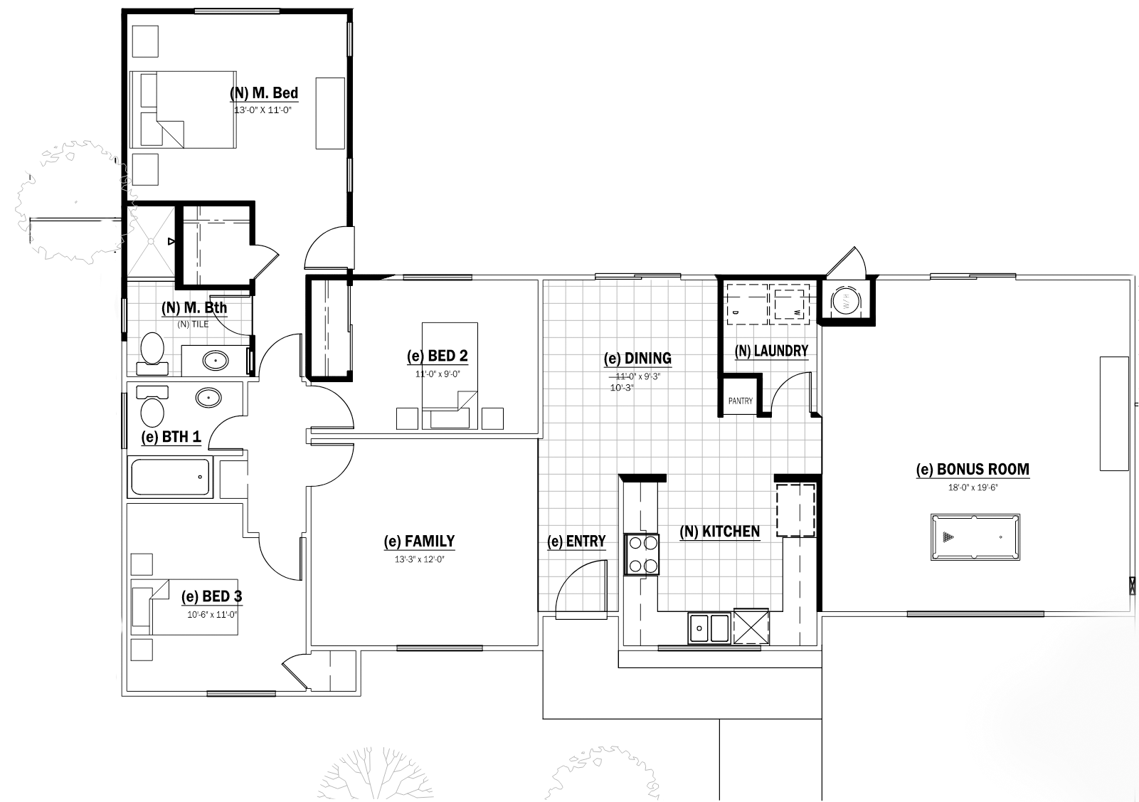 before: 1-story home, 3 Bed/ 1 bath 1,345 Sq Ft